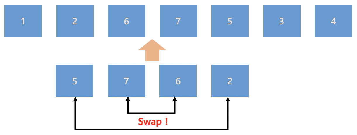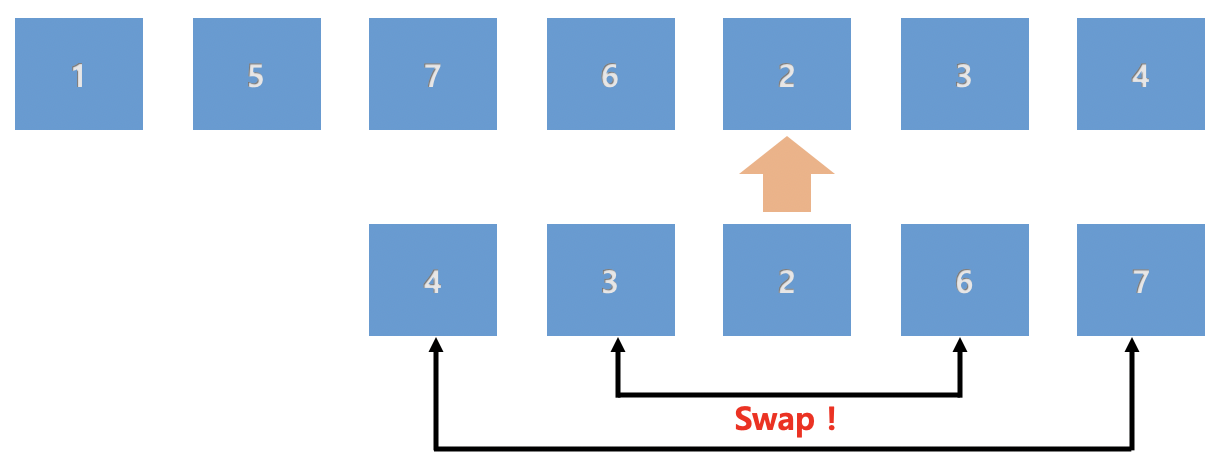 그림 2. (2, 5) swap (3, 7) 1회 진행