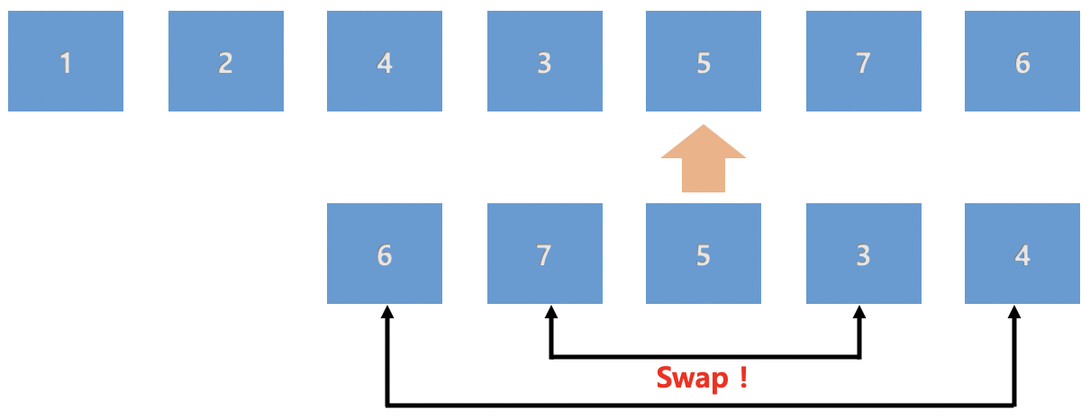 1 2 4 3 5 7 6우선 좀 더 이해하기 쉽게 해당 메커니즘을 그림으로 표현해보겠습니다. (N = 7)