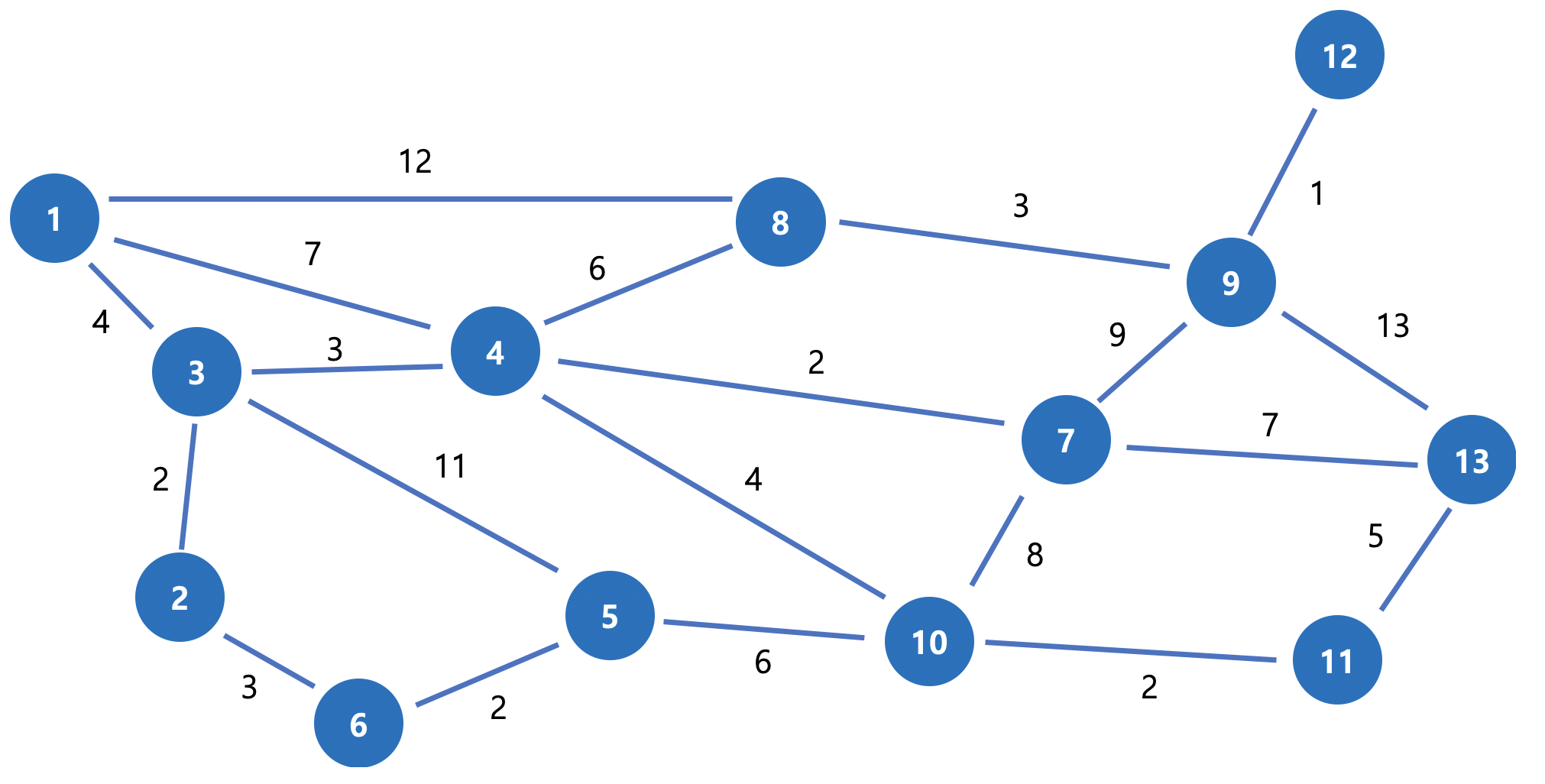 주목하실 점은 5번과 10번 노드의 간선과 4번과 8번 노드의 간선입니다.
