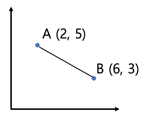 그림 1. 점 A, B 좌표 평면에 두 점이 존재하는 경우 두 점 사이의 거리는 아래와 같습니다.