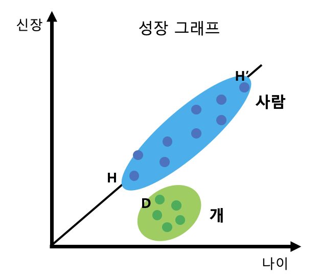 아래와 같이 사람과 개의 성장 그래프를 표현하는 경우를 봅시다.