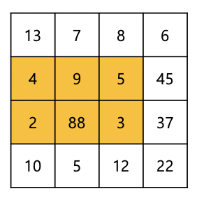 그림 1. 예시 표 따라서 결과는 4 + 9 + 5 + 2 + 88 + 3 = 111을 출력하면 됩니다.