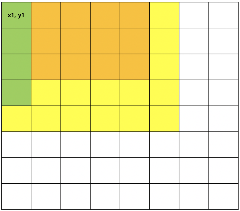 그림 6. 인덱스 별 의미 임의의 인덱스 (x1, y1) 일 때, 각각의 사각형은 아래와 같은 의미를 지닙니다.