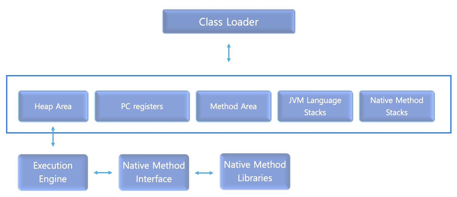 - Execution Engine ClassLoader에 의해 메모리에 적재된 bytecode를 기계어로 변경해 명령어 단위로 실행.
