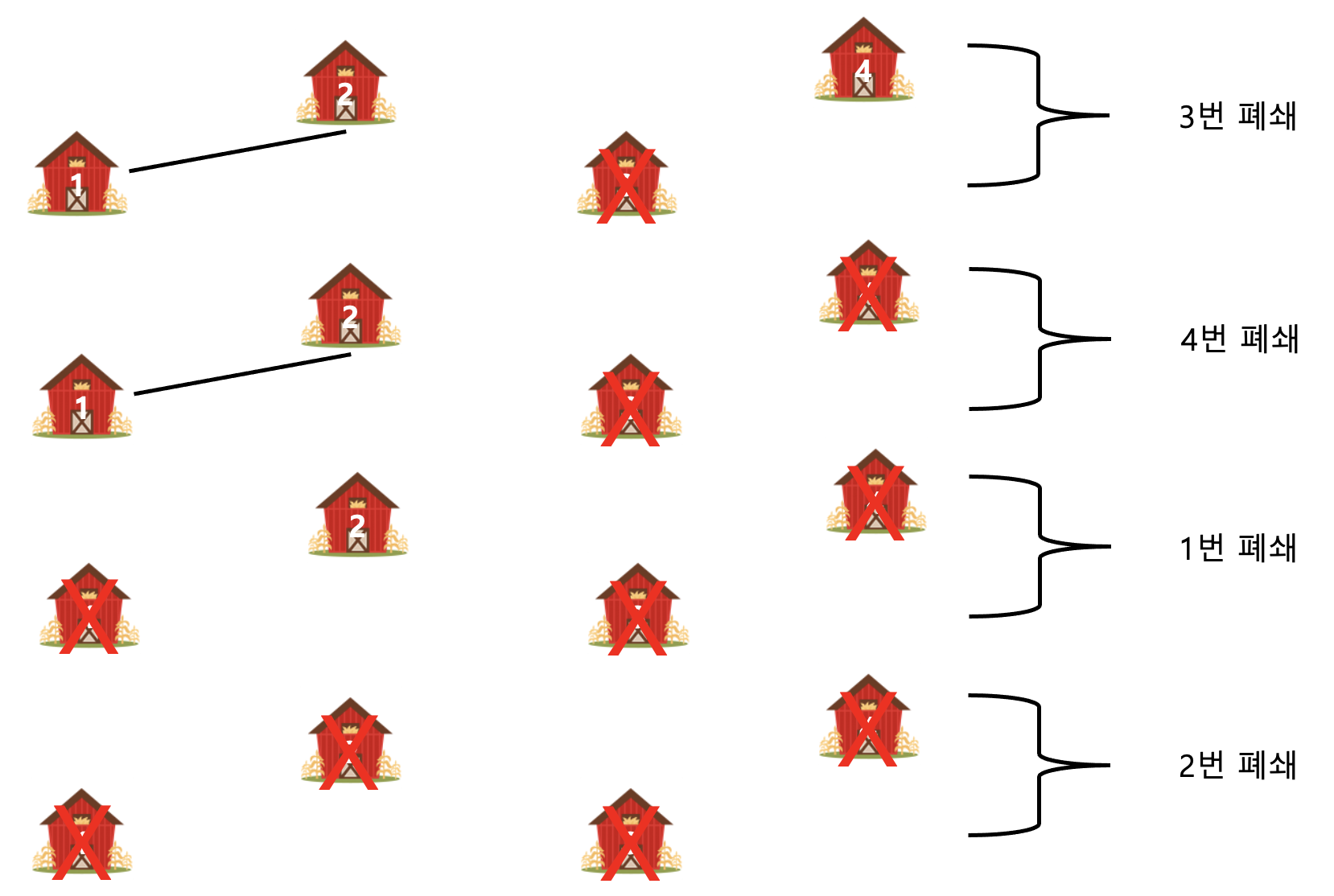 위의 예제에서 쿼리를 역으로 진행할 때 4번 농장을 복구시키는 경우가 이와 같습니다.