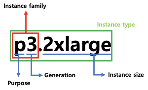 - Instance family: Host 서버 사양 결정 - CPU/GPU spec, RAM 종류/크기, Instance store 유무 등
